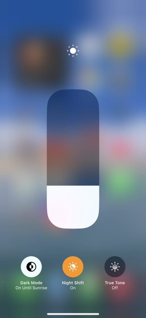 • In the Control Center, press and hold the Brightness slider (the one with the sun icon).